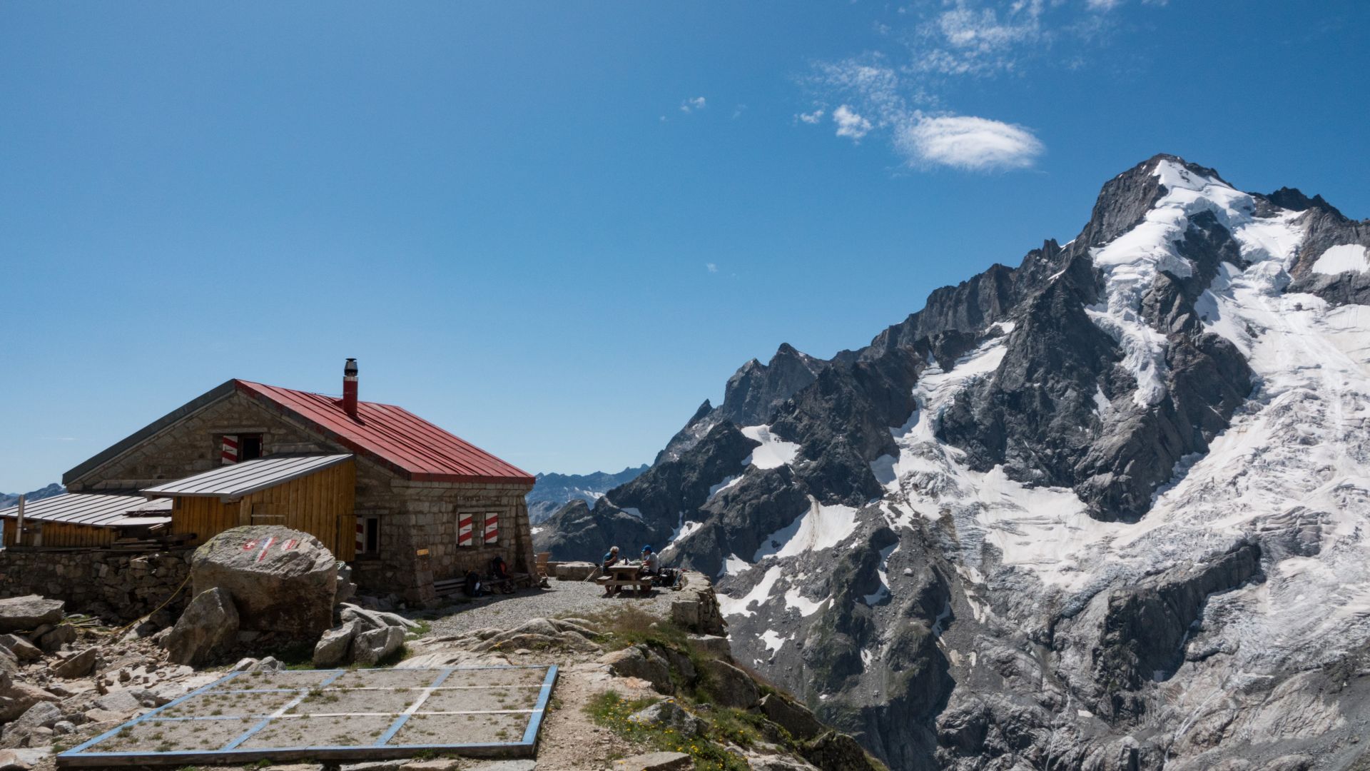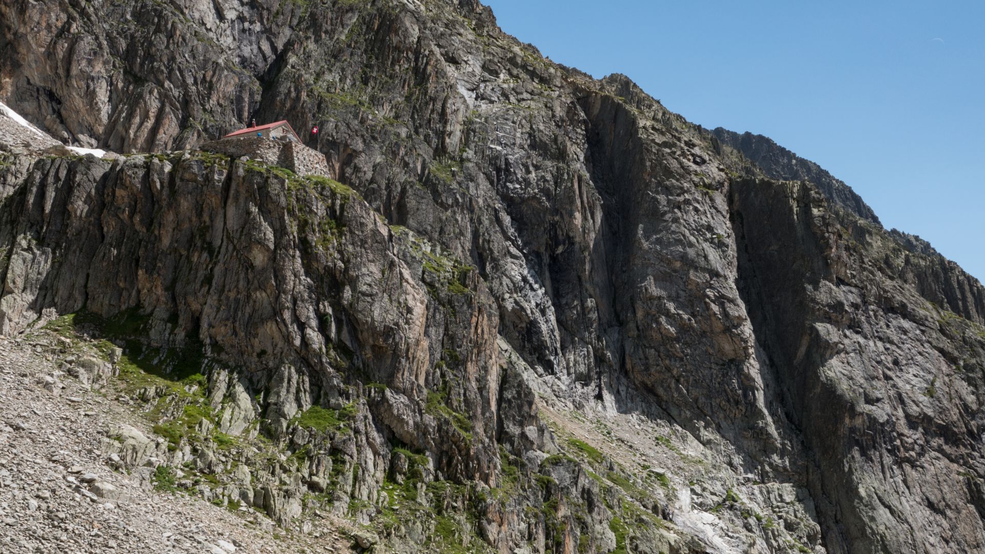 La dernière traversée d'un pierrier vous offre une vue imprenable sur votre destination : la cabane de l'A Neuve, perchée à 2735 mètres d'altitude. Attention, pour vous y rendre, vous devrez emprunter un petit bout de sentier entre échelles et mains courantes.