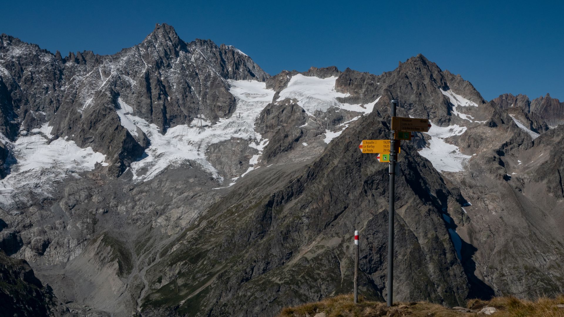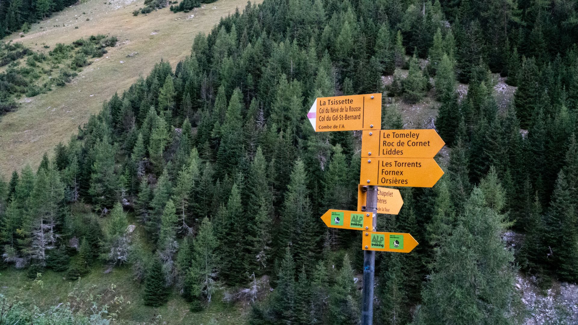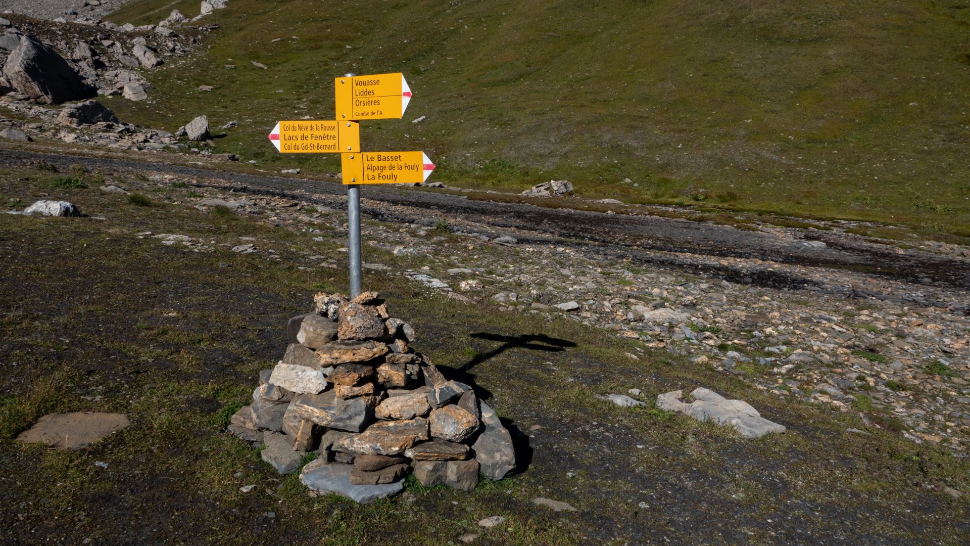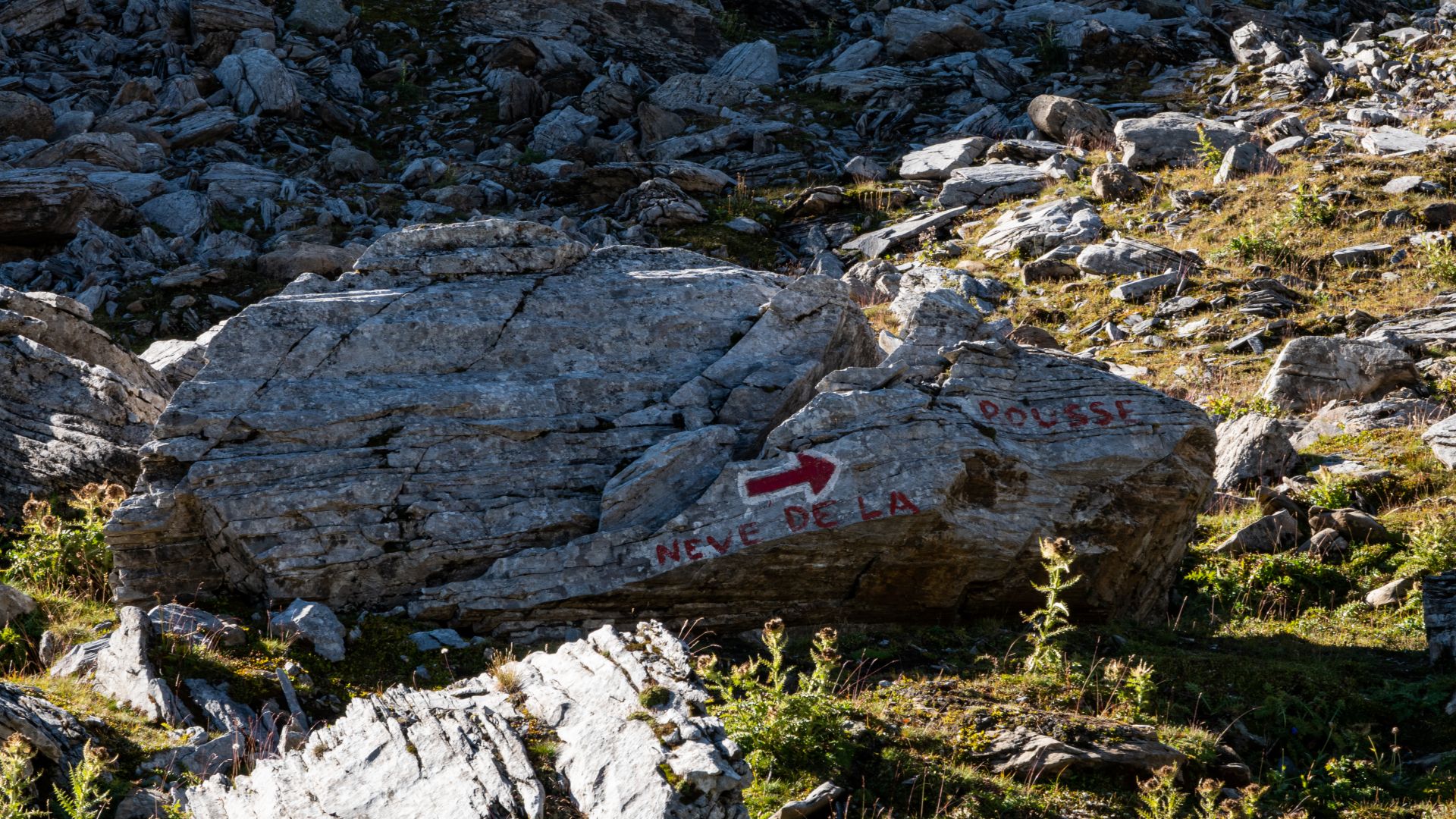 C'est à Vichères que commence cette aventure, un petit village de la commune de Liddes. Après une rapide montée assez abrupte dans la forêt, vous arriverez sur une route en gravier qui vous conduira à une petite buvette dans la combe de l'A. En pousuivant après ce bâtiment de pierre, restez attentifs, car la combe regorge de cerfs élaphes que vous aurez peut-être la chance de croiser, surtout si vous partez tôt. Au fond de cette combe se trouve le col du Névé de la Rousse, l'une des destinations de cet itinéraire. Ce col est particulier de part sa couleur, de sa terre à sa neige (s'il en reste), d'une couleur orange-rouille (comme son nom l'indique).
