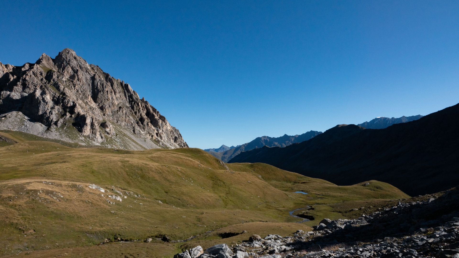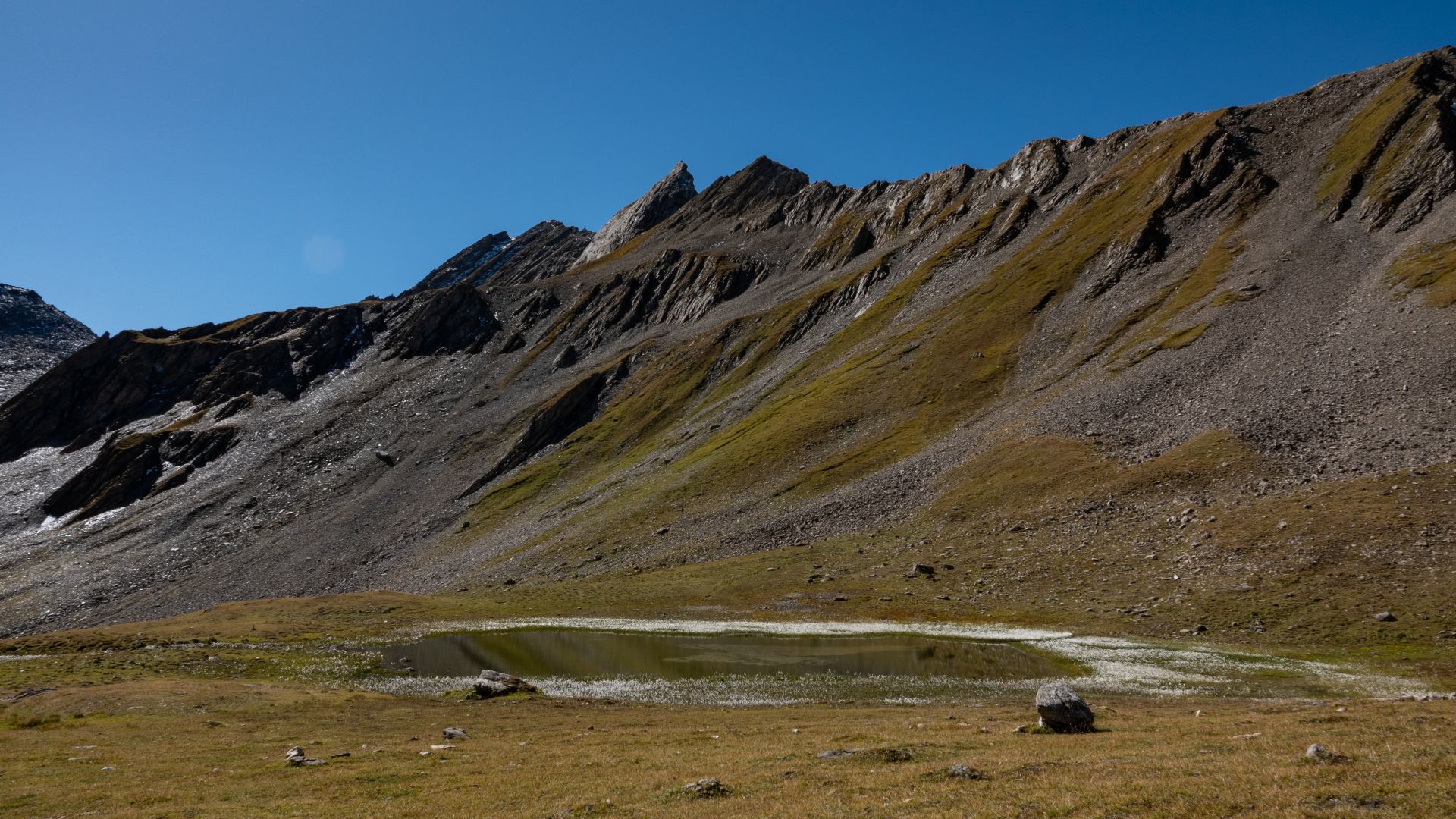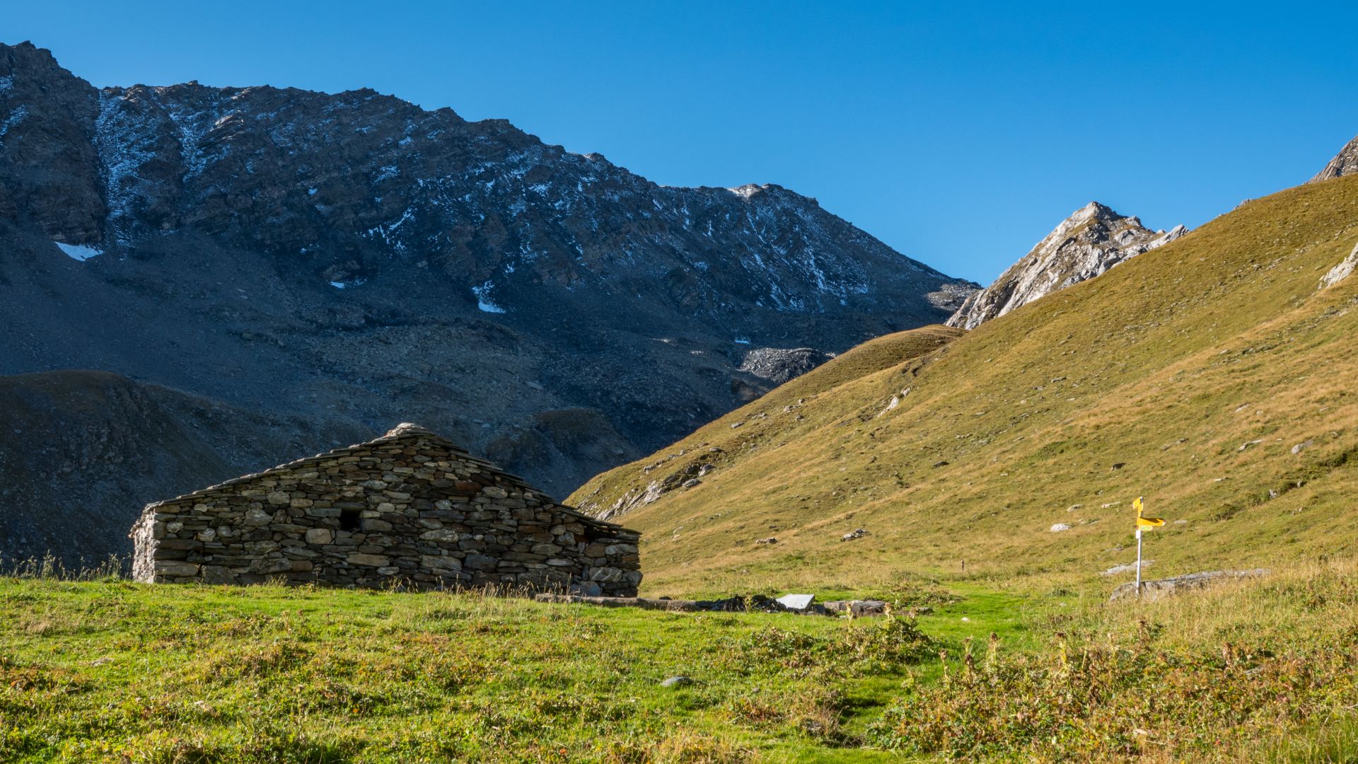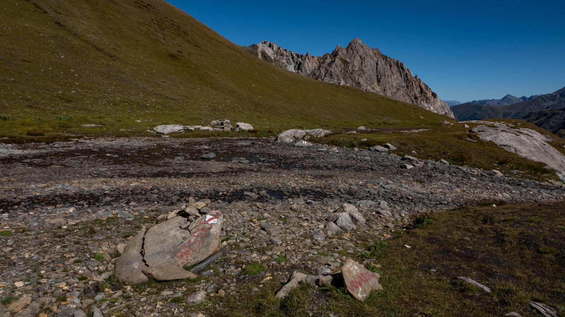 C'est à Vichères que commence cette aventure, un petit village de la commune de Liddes. Après une rapide montée assez abrupte dans la forêt, vous arriverez sur une route en gravier qui vous conduira à une petite buvette dans la combe de l'A. En pousuivant après ce bâtiment de pierre, restez attentifs, car la combe regorge de cerfs élaphes que vous aurez peut-être la chance de croiser, surtout si vous partez tôt. Au fond de cette combe se trouve le col du Névé de la Rousse, l'une des destinations de cet itinéraire. Ce col est particulier de part sa couleur, de sa terre à sa neige (s'il en reste), d'une couleur orange-rouille (comme son nom l'indique).